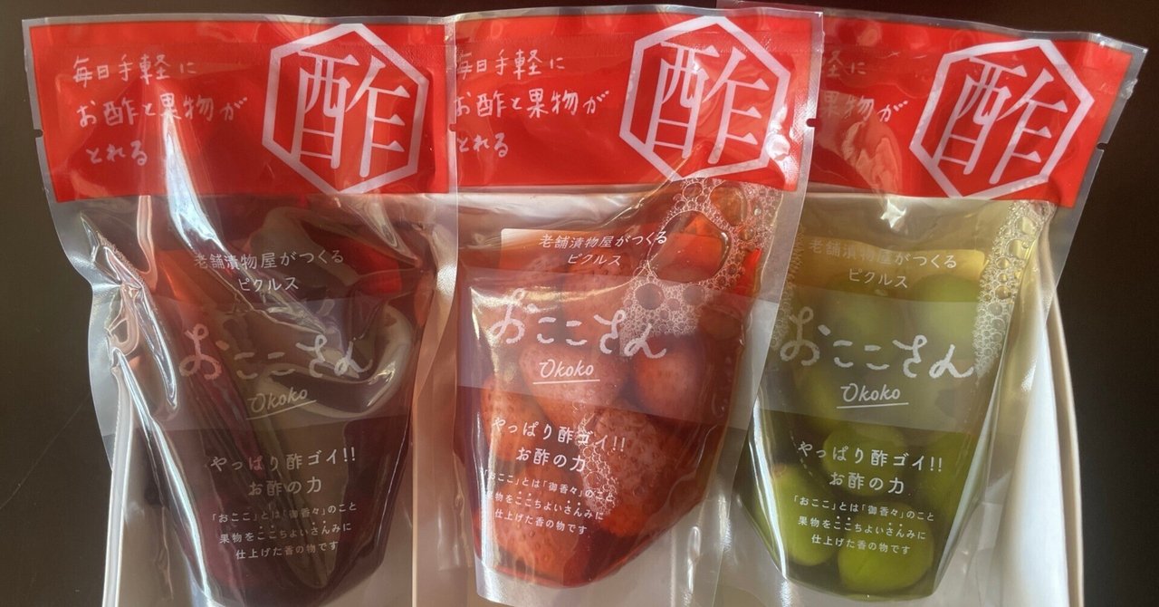フルーツピクルス「おここさん」は福島の老舗漬物店「長久保食品」が開発し、2018年に発売されました。